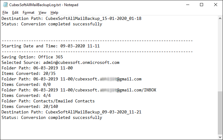 After successful conversion, software will open the Log Report in TXT file as shown below -