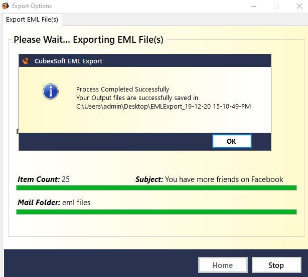 After clicking on OK option, the software will highlight two options - OK and View Log. By clicking on OK, you can complete the process and by clicking on View Log, you can save the complete conversion report of EML files in TXT file.