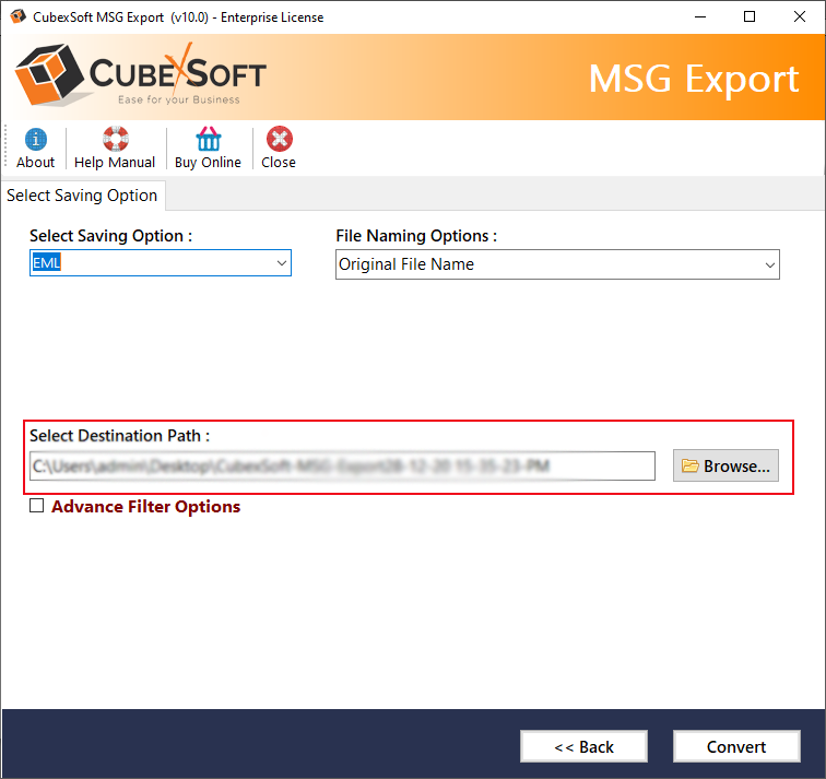 TO, FROM Fields: Users can choose specific to and from addresses to save MSG emails