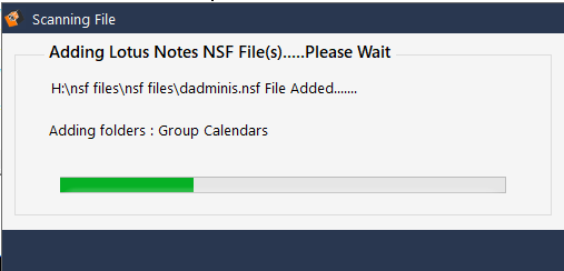 Once you have selected the NSF files, the software will start the scanning process and after analysing, extracts all its folder items on the left software screen.