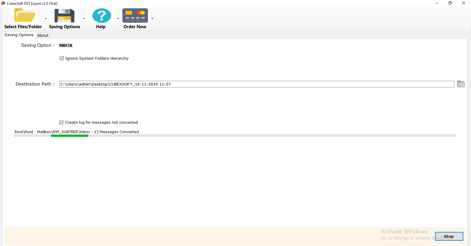 Now, hit on Browse option and choose saving path to save resultant files where you want. After selecting destination location, press on Convert button to initiate the conversion procedure of OST files to MBOX format