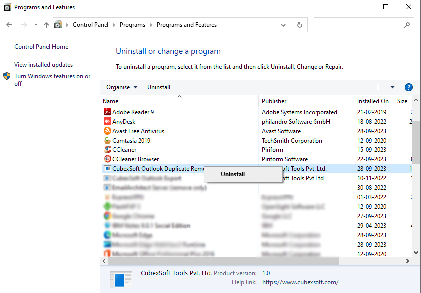 Follow the given instructions to uninstall the CubexSoft Outlook Duplicate Remover. You can uninstall the software by following any one of the given methods: