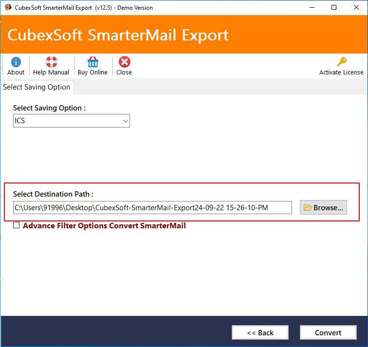 Now, the destination Path option will show the default path where software will save converted file.