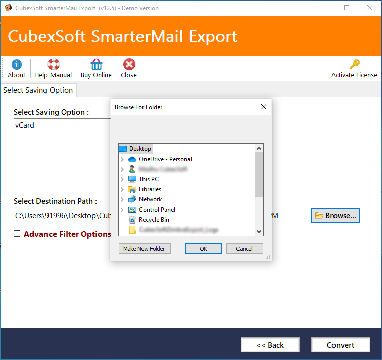Now, click Convert button to start the conversion of SmarterMail to vCard.