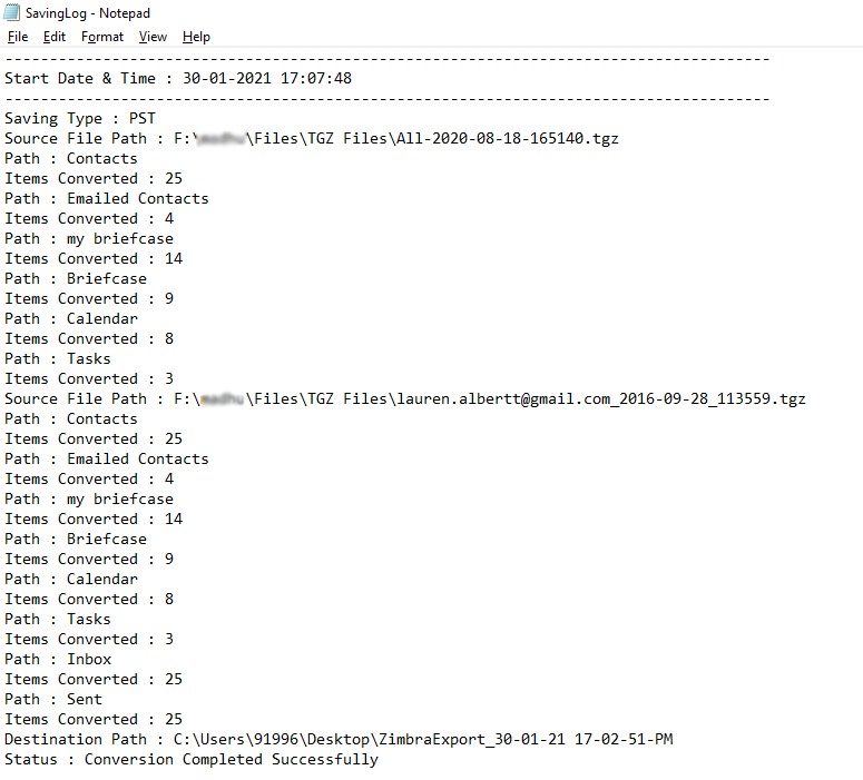 Once you click the OK button, the software will automatically open log report in Notepad. You can save it in TXT file for keeping complete conversion record.